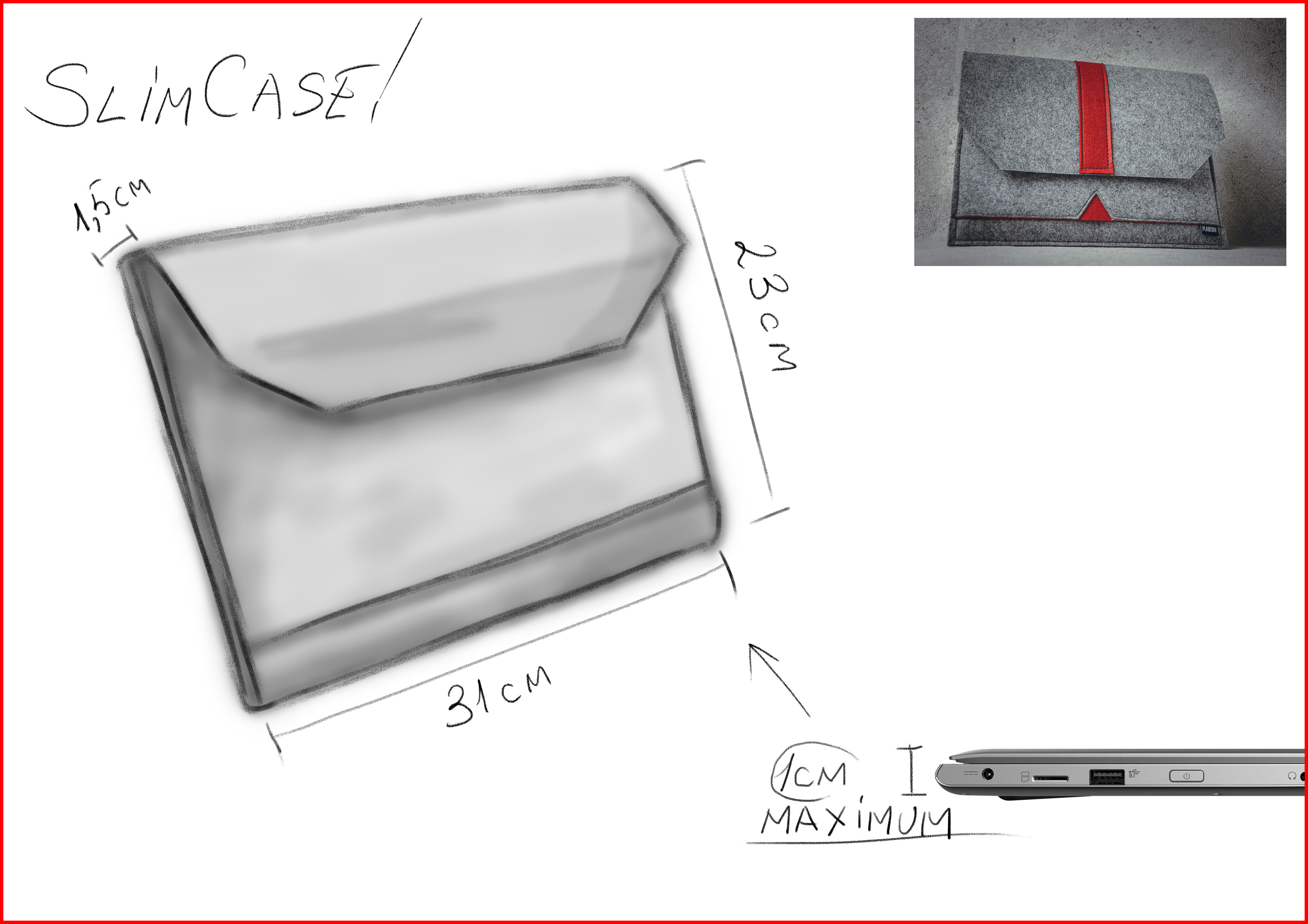 Stilvolles Laptop-Zubehör. Stoßfest durch 5 mm Filz. Für Handabnutzung.