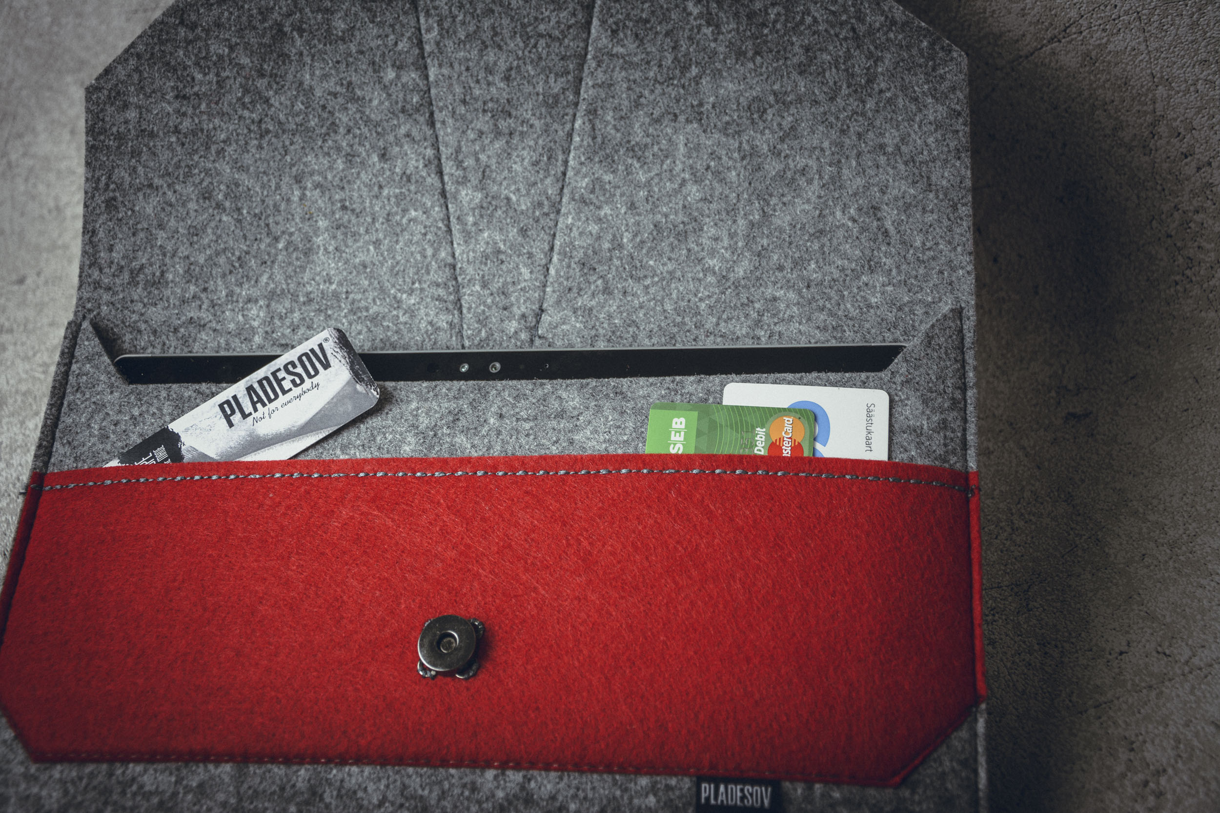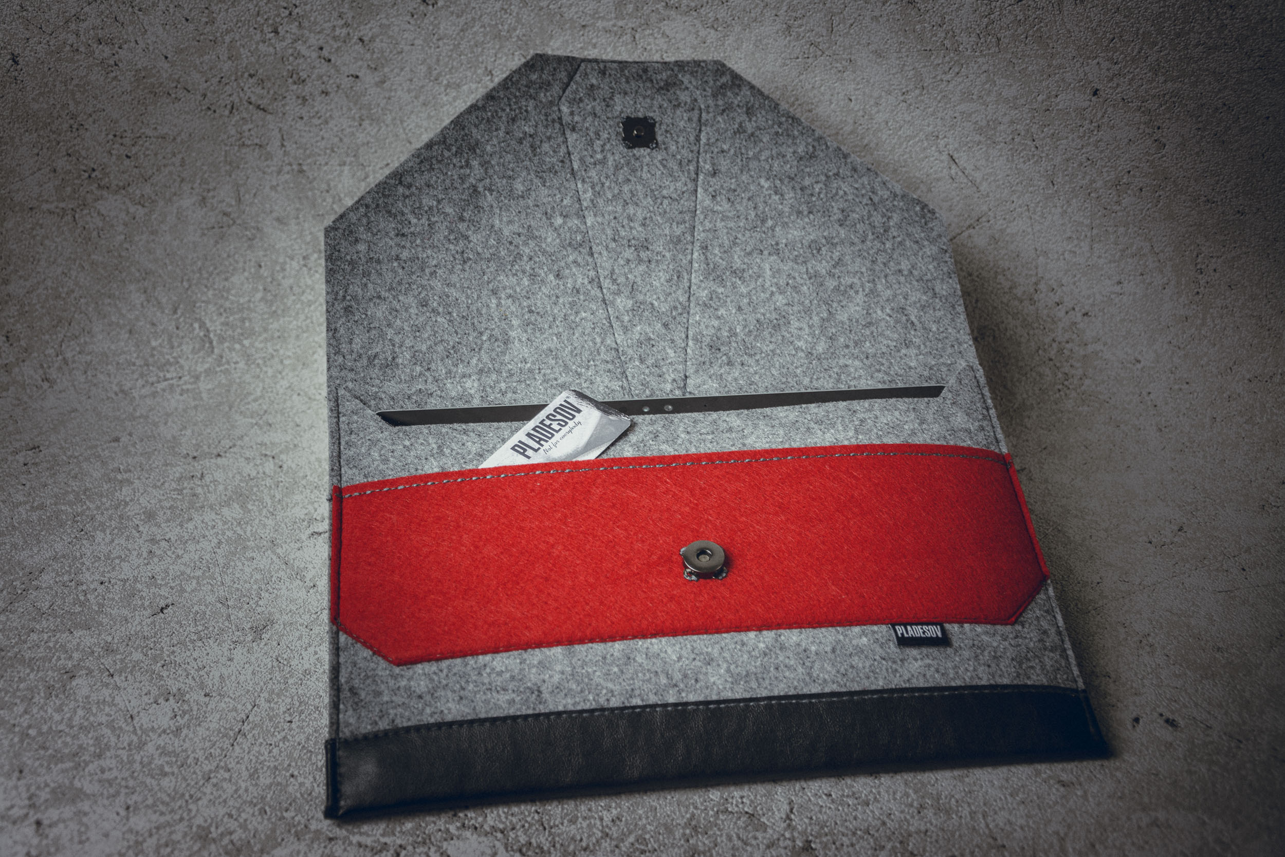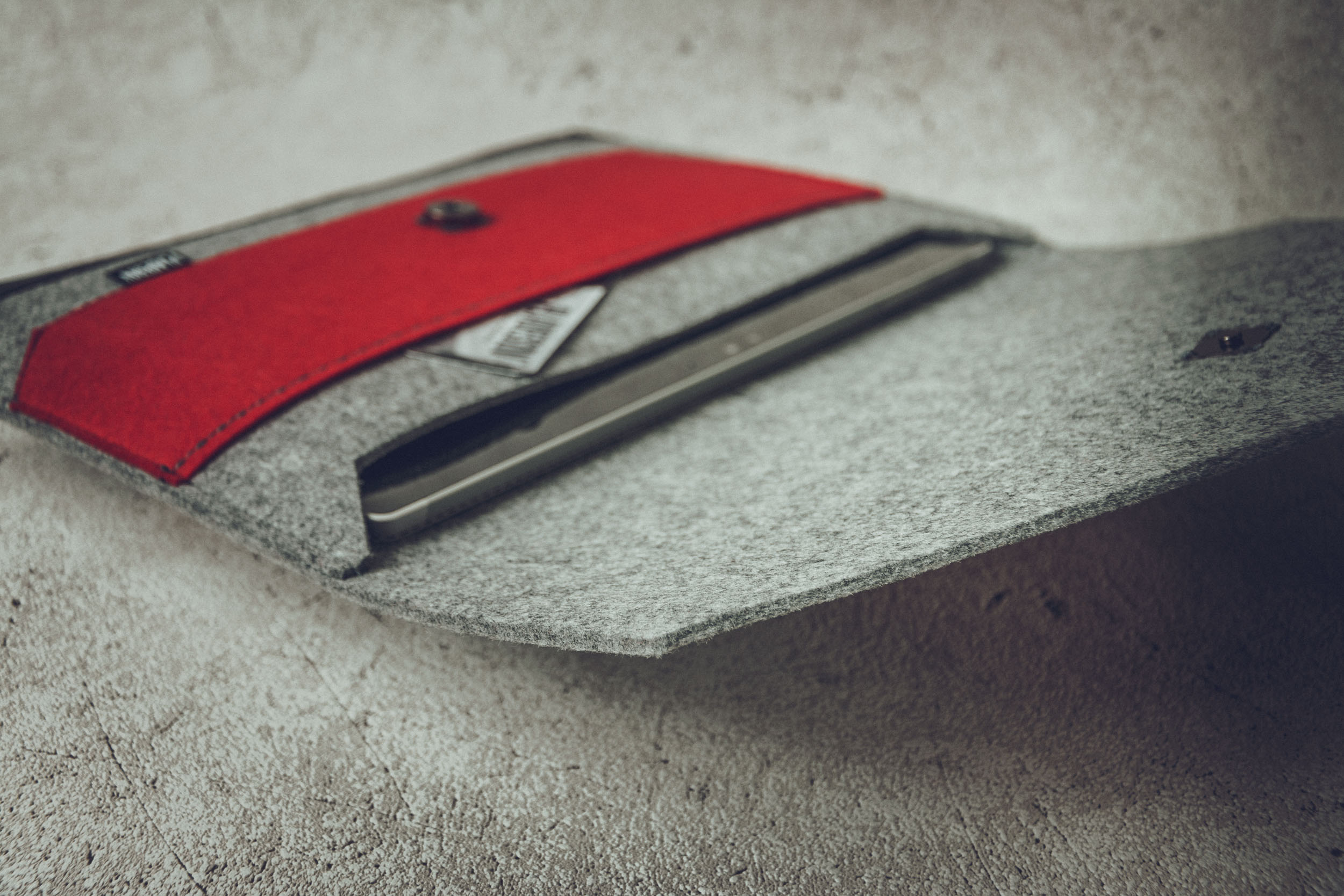 Dies ist ein extravagantes Zubehör, das Ihr elektronisches Gerät schützt. Hergestellt aus 5 mm dickem Filz, langlebig und fühlt sich weich an. Hergestellt in Nordeuropa von einer Person. Dies ist ein aufstrebender Designer. Private europäische Marke. Einzigartige Kleidung direkt vom Designer für die Arbeiterklasse. Hand- und Maschinenarbeit. Ohne Vermittler.