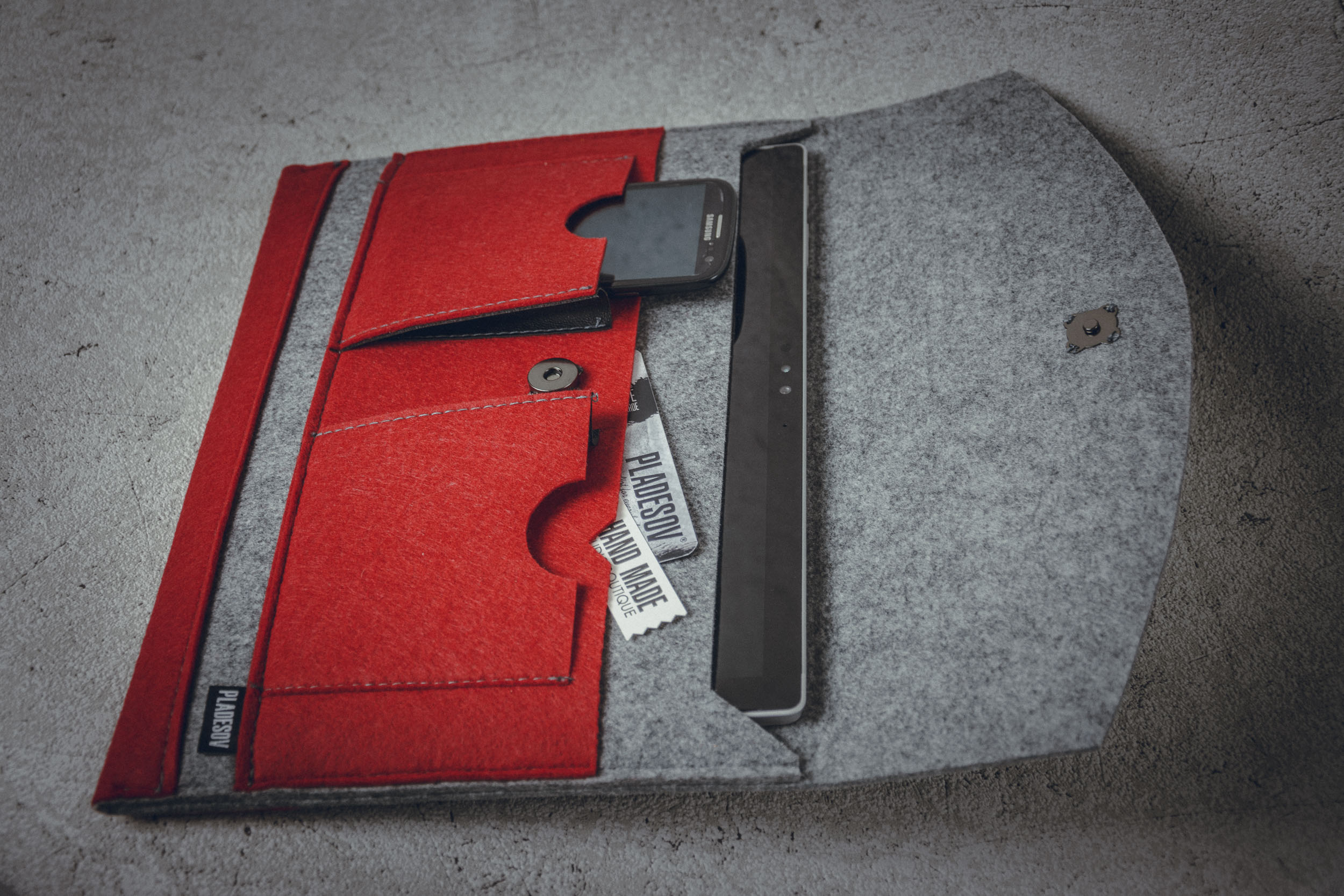 Dies ist ein extravagantes Zubehör, das Ihr elektronisches Gerät schützt. Hergestellt aus 5 mm dickem Filz, langlebig und fühlt sich weich an. Hergestellt in Nordeuropa von einer Person. Dies ist ein aufstrebender Designer. Private europäische Marke. Einzigartige Kleidung direkt vom Designer für die Arbeiterklasse. Hand- und Maschinenarbeit. Ohne Vermittler.