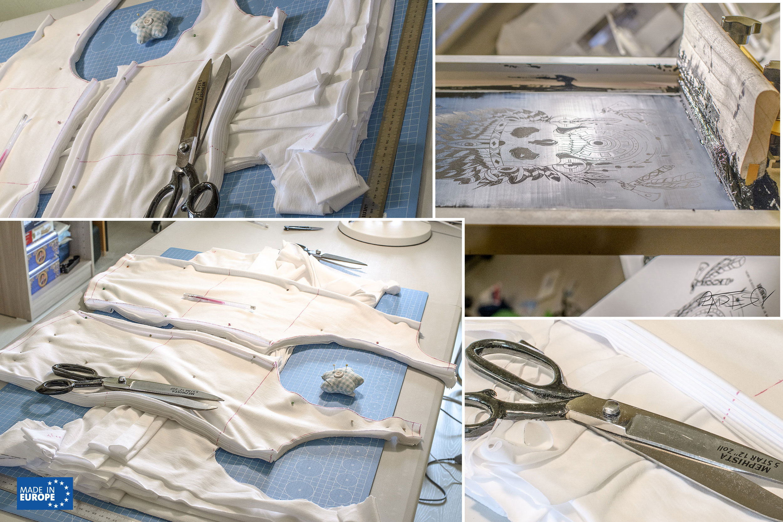 Ich kann Souvenirs und Geschenke für private Firmen nähen. Ich spezialisiere mich nicht auf eine Richtung. Ich versuche alles zu machen. Aber gleichzeitig nähe ich nicht alles. Nähende fabrik, Atelier Studio Boutique und Fotostudio und Druckwerkstatt, alles an einem Ort. Made in Europe.